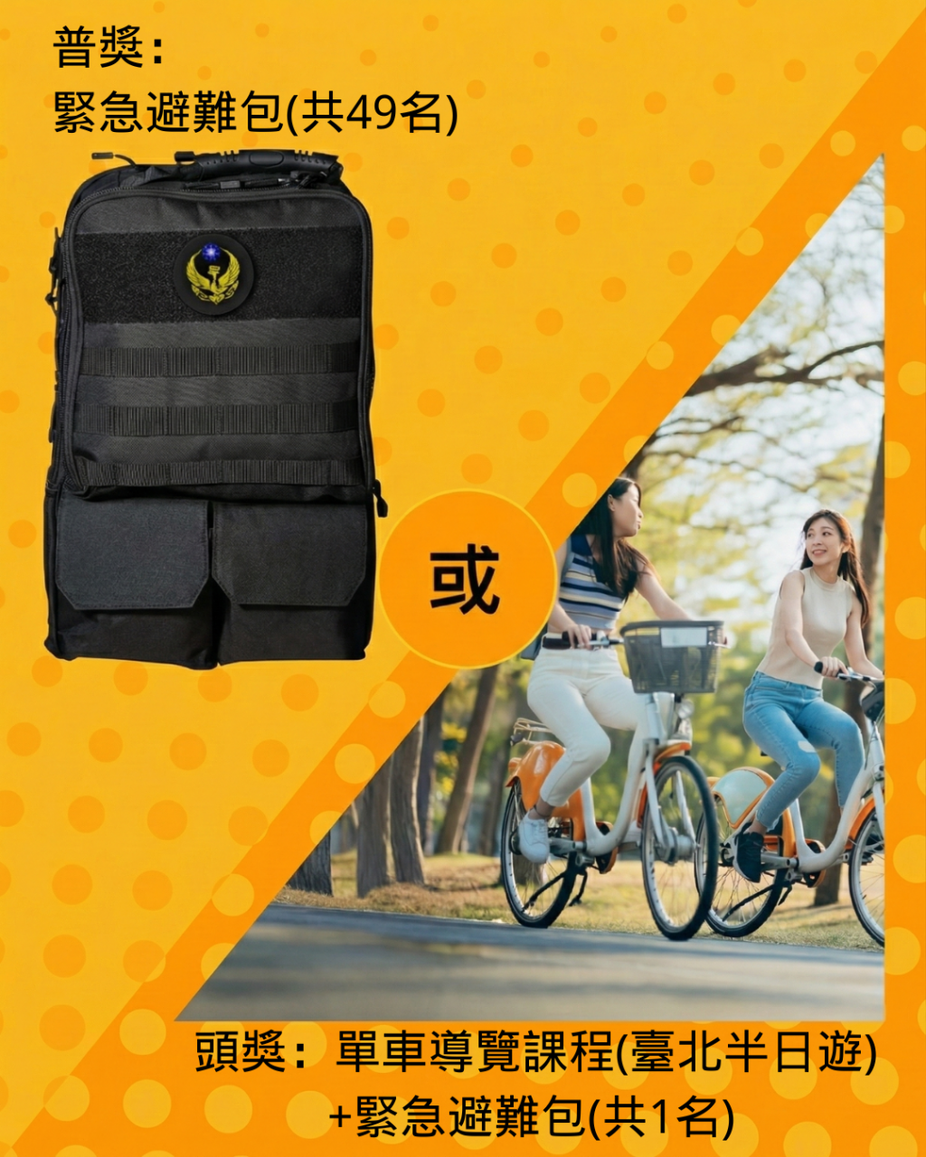 | 三、 | 為強化民眾生活防災知識及平時防災準備,提升整體防災能力與城市韌性,鼓勵所屬踴躍下載消防防災e點通APP及參與旨揭抽獎活動。 |